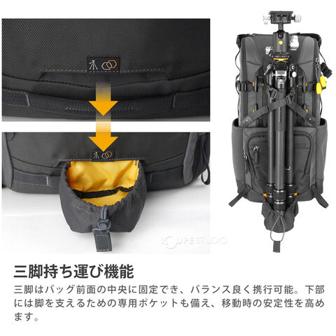 ALTA SKY 52は、20リットルの実用的なバックパックで、特に200-600mmの望遠レンズが装着された一眼レフカメラやフルフレームミラーレスカメラを持ち運ぶために設計されています。さらに、最大4つのレンズや日用品、そして16インチのノートパソコンも収納可能です。