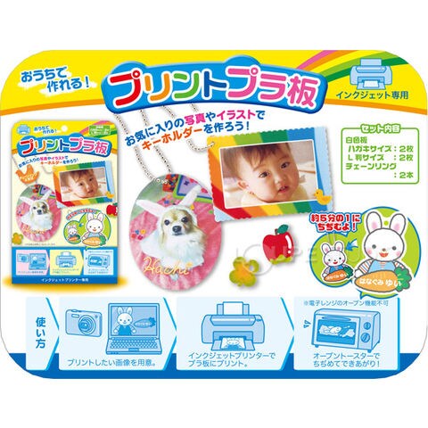 | 内容物 | プラ板白色板(ハガキサイズ×2枚、L判サイズ×2枚) チェーンリング×2本 |