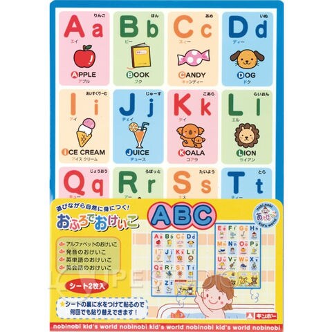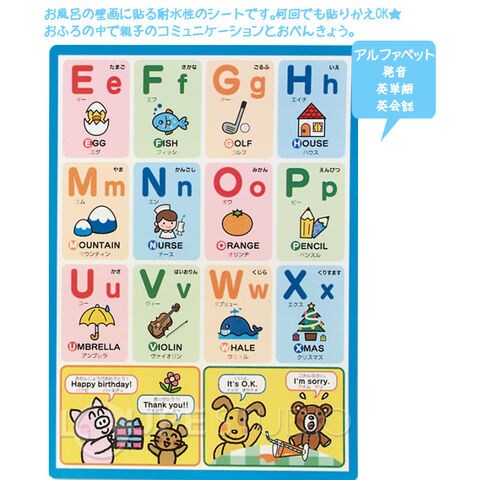 一緒にお風呂に入りながらお子様とアルファベットのお勉強が出来ます。おふろシールは耐水性で何度でも貼り換えが出来ます。