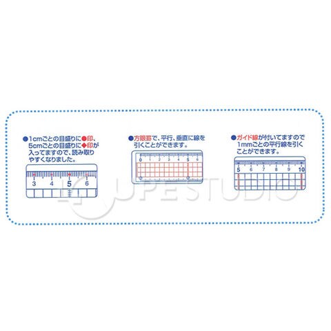 目盛が見やすいマット仕上げで触り心地も良くこの表面へのマット加工を施してあることで光が反射しません。マット仕上げで光の反射を抑えます。目にやさしい。読み取りやすいガイド線付。