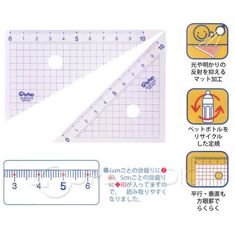 三角定規 目盛寸法10cm 児童用 目盛りが見やすいマット仕上げ G-FRIEND 文房具 三角定規 小学生 児童用 文具スペック