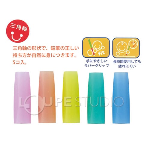 グリップは三角軸の形状をしていますので鉛筆の正しい持ち方が自然と身に付きますのでこれから鉛筆を持つお子様にはおススメです!