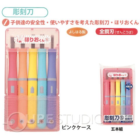 彫刻刀 セット 小学校 ほりおくんS 5本組 女の子 男の子 小学生 男子 安心 安全 すべり止めシート付 ギンポー 5本 ケース セット 文房具 彫る 図工 文具 工作 作品 彫刻刀セット おすすめ ランキング シンプル カラフル ピンク ブルー