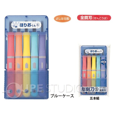 彫刻刀 セット 小学校 ほりおくんS 5本組 女の子 男の子 小学生 男子 安心 安全 すべり止めシート付 ギンポー 5本 ケース セット 文房具 彫る 図工 文具 工作 作品 彫刻刀セット おすすめ ランキング シンプル カラフル ピンク ブルースペック