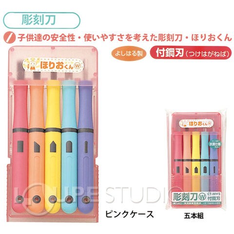 彫刻刀 セット 小学校 ほりおくんW 研き直し可能タイプ 5本組 女の子 男の子 小学生 男子 安心 安全 すべり止めシート付 ギンポー 5本 ケース セット 文房具 彫る 図工 文具 工作 作品 彫刻刀セット おすすめ カラフル ピンク ブルー