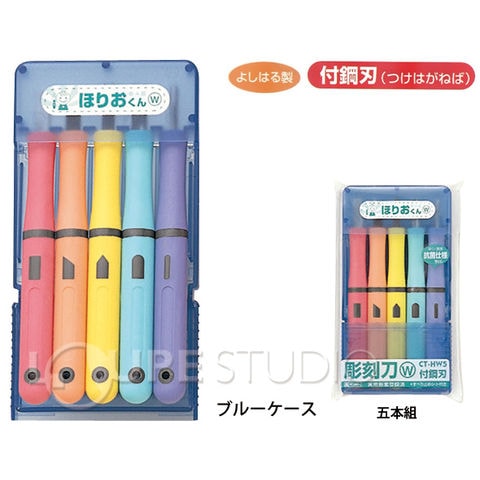 彫刻刀 セット 小学校 ほりおくんW 研き直し可能タイプ 5本組 女の子 男の子 小学生 男子 安心 安全 すべり止めシート付 ギンポー 5本 ケース セット 文房具 彫る 図工 文具 工作 作品 彫刻刀セット おすすめ カラフル ピンク ブルースペック