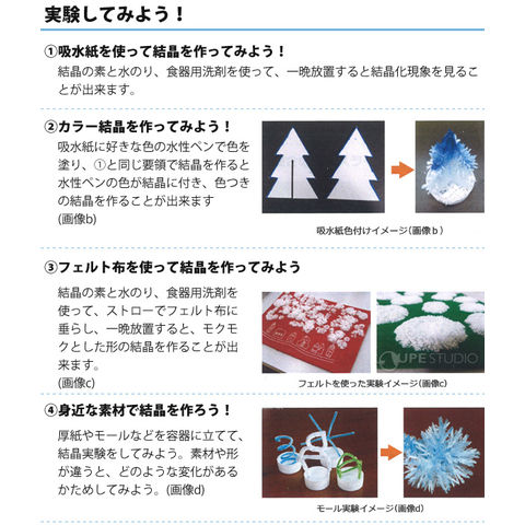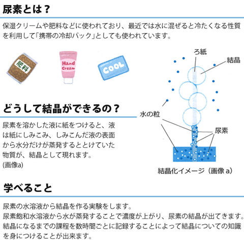 尿素の水溶液から結晶を作る実験キットです。
