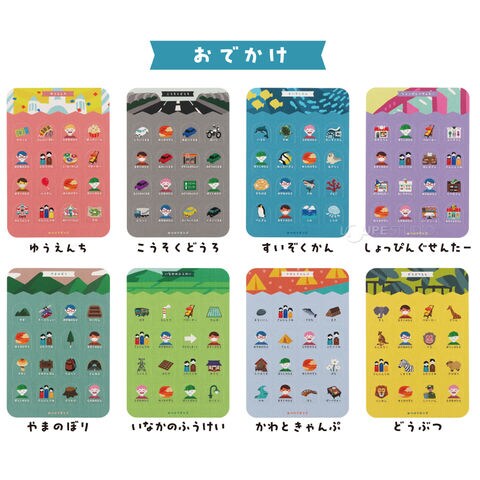 「こうそくどうろ」「ゆうえんち」「かわときゃんぷ」等、全8種類入り。