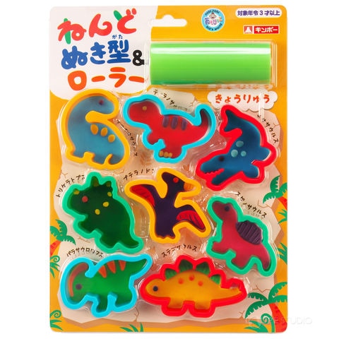 8種類の「きょうりゅう」のねんどぬき型とローラーのセットです。