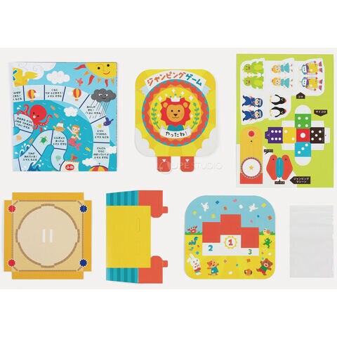 | セット内容 | すごろく1枚(両面)、パーツ台紙、台、ゴール+メダル、土俵、表彰台、お片付け袋 |