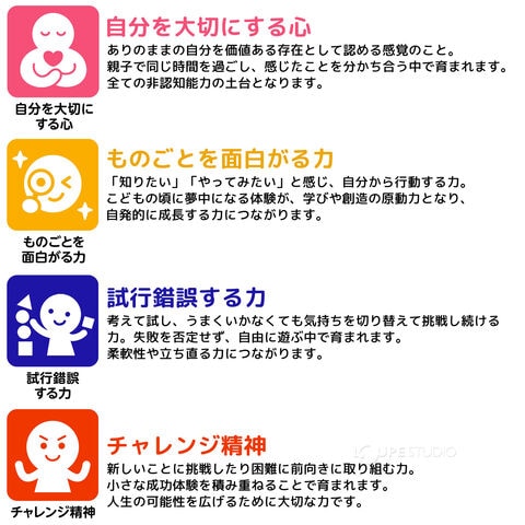 「こども」と「おや」でセットになっているので、「おや」のうえに「こども」を乗せてそろえてセットにする、あわせ遊びもできます。