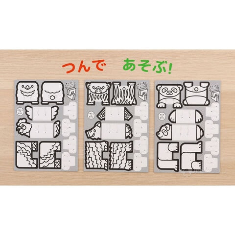 はさみとのりは必要ありません。ダンボールフィギュアはスタックができる設計になっているので、トーテムポールのように積んで遊べます。