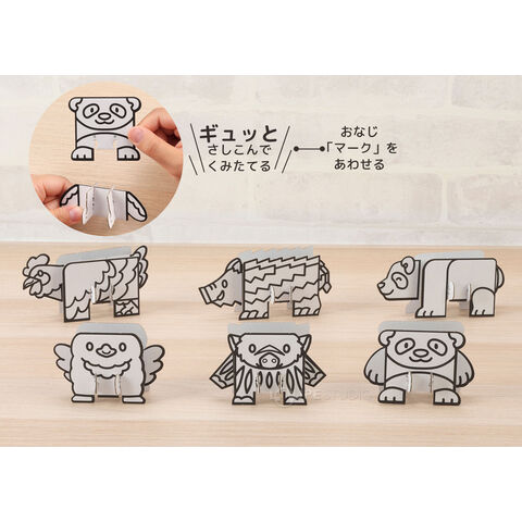 森のどうぶつの親子をモチーフにした6種類のダンボールフィギュアがつくれます。