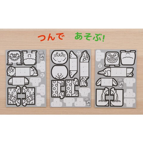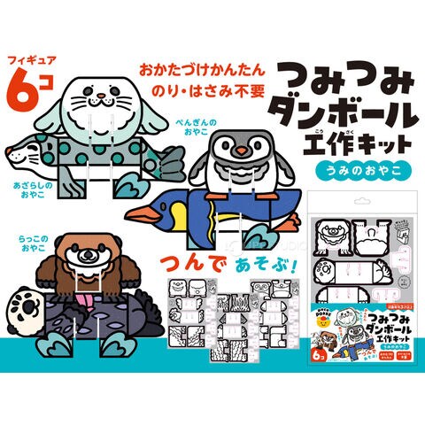 海のどうぶつの親子をモチーフにした6種類のダンボールフィギュアがつくれます。