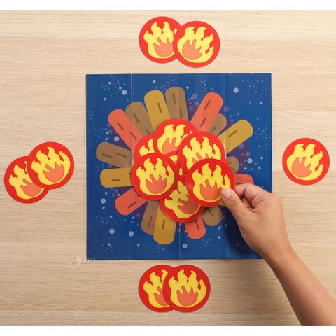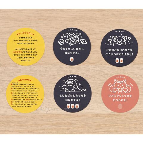 たきびを囲んで話すことを模した会話ゲームなので、ごっこあそびを兼ねながら楽しくあそべます。カードにあるマシュマロの数でゲーム要素もプラス。