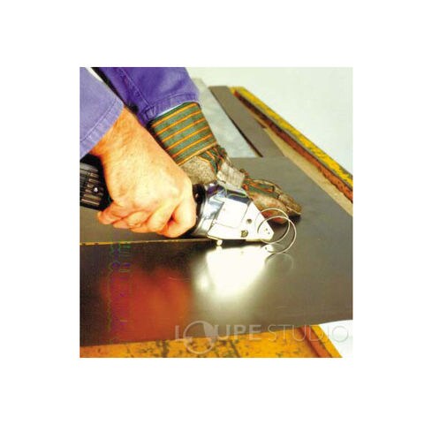 角度がつけられたナイフ刃により、自然と前へ進む推進力で片手で楽に金属切断。台刃2枚+ナイフ刃1枚で素材を支えながら切断。仕上げ作業の要らない美しい切断エッジが実現します。