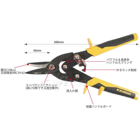 操作性の高いEDMAメタルカッターは、パワフル&長寿命。鍛造クロムモリブデン鋼と長耐久パワーハンドルの合体。フランスから来た飛行士という名のカッティングツール。