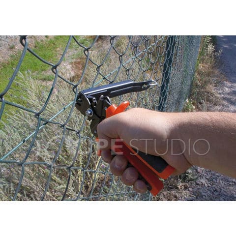 50個のリングが収納できるマガジンが付属したフェンス用リング留めペンチ