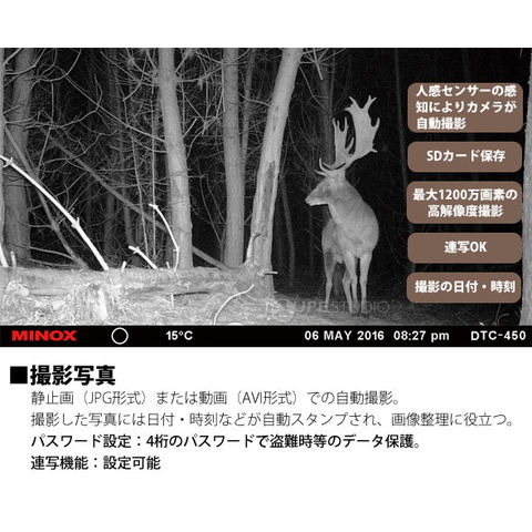 屋外型センサーカメラ DTC550 ミノックス トレイルカメラ 防水 無人 監視 防犯カメラ 暗視 自動撮影 リモート 写真 動画 撮影スペック