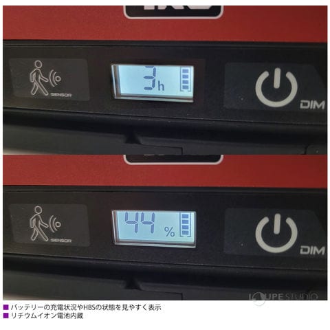 見やすいLCDディスプレイは、バッテリーの充電状態やHBSの状態などの情報が確認可能。