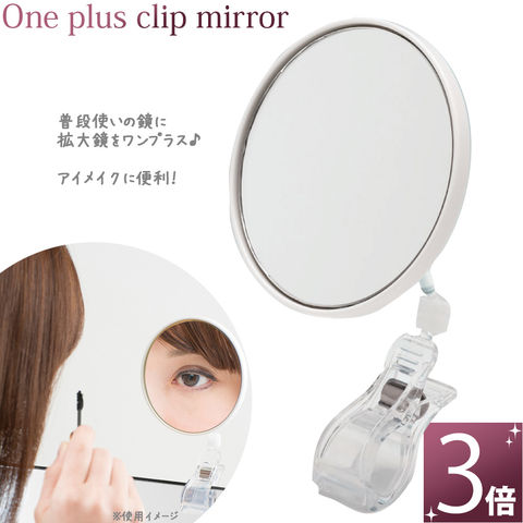 拡大鏡 メイク 3倍 ワンプラスクリップミラー 鏡 コンパクトミラー コンパクト 化粧鏡 洗面所 浴室 まつげエクステ マスカラ アイメイク 化粧 老眼 アイデアグッズ クリスマスプレゼント クリスマス