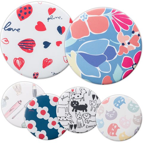 コンパクトミラー コンパクト ミニ 手鏡 携帯 ハンドミラー 花柄 フラワー 猫 ねこ ネコ 犬 いぬ ドッグ モノトーン ハート コスメ柄 メイク プルーン ミラー ナピュアミラー 鏡 かわいい おしゃれ カラフル テキスタイル ブランド スペック