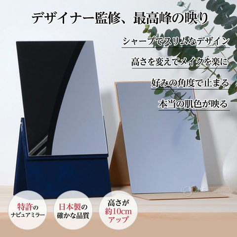 ナピュアミラー 2 Wayフォールディングミラー スタンドミラー ヘアメイク 首 顔 メイク直し スキンケア 目元 眉毛 鏡 折立 おしゃれ 卓上 高さ調整 折りたたみ HF-05 クリスマスプレゼント クリスマススペック