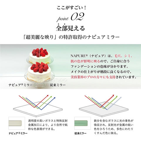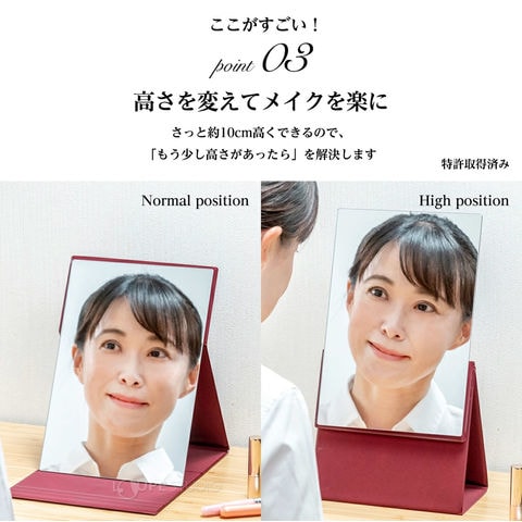2Wayフォールディングミラーは、鏡の高さを変えてメイクができる折りたたみタイプのメイクミラーです。