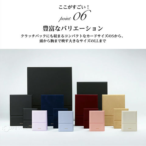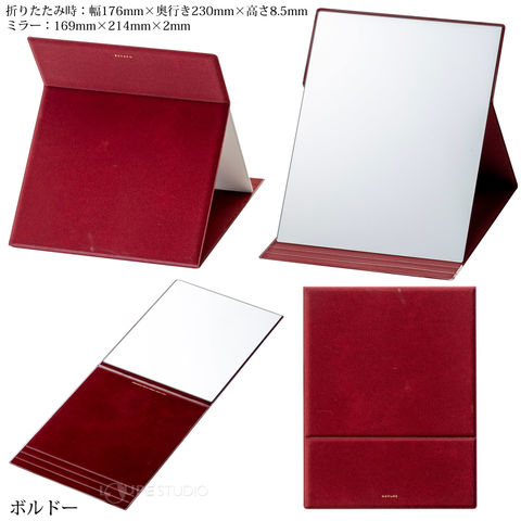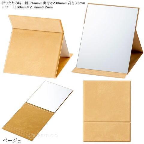 | 商品サイズ | 本体/幅176mm×奥行き230mm×高さ8.5mm(折りたたみ時) 幅176mm×奥行き230mm×高さ221mm(使用時最大値) ミラー/169mm×214mm×2mm |