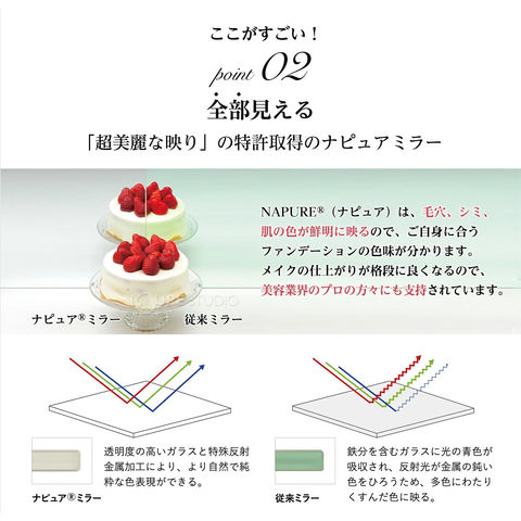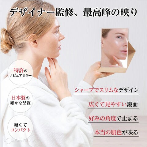 メイクのプロも愛用。ナピュアRフォールディングミラーは、持ち運びに便利な折りたたみタイプのスリムなメイクミラーです。