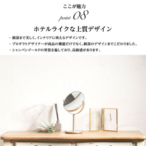 細部まで大きく映る拡大鏡は、気になるお肌のお手入れやポイントメイク時に。