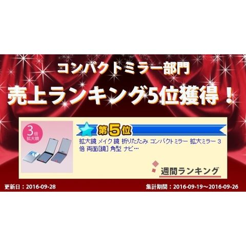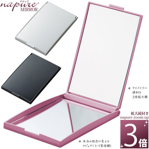 拡大鏡 メイク 鏡 折りたたみ コンパクトミラー コンパクト 拡大ミラー 3倍 両面 角型 ナピュアミラー ズームアップ NZC-03 手鏡 ハンドミラー 人気 特許取得 毛穴 老眼 おしゃれ クリスマスプレゼント クリスマススペック