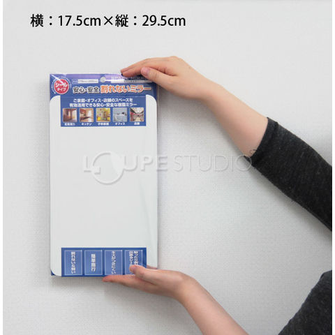 | 注意 | ※樹脂製の鏡はガラス製の鏡ほどクリアに映りませんが、割れないので安全です。 歪みにくい距離がありますのでなるべく近づいてご覧ください。 |