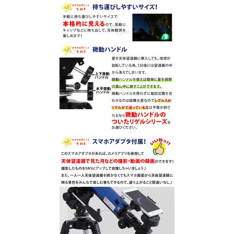 天体望遠鏡 スマホ 撮影 初心者 リゲルハイ60D 日本製 天体望遠鏡セット 望遠鏡 天体 子供 小学生 携帯 ブルー 天体ガイドブック付き 子供用に最適 初心者に向け本気で作られた 土星の環 土星食 レモン彗星 屈折式 キャンプ 天体観測会 クリスマスプレゼント クリスマススペック