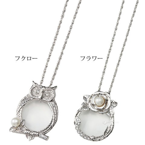 ルーペ 虫眼鏡 ペンダントルーペ ネックレス レディース おしゃれ 女性 スワロフスキー 社製 チェーン シルバー 淡水パール フクロウ フラワー クラウン リボン 冠 花 拡大鏡 おすすめ プレゼント 30代 40代 携帯 持ち運びスペック
