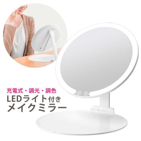 LEDライト付き メイクミラー 卓上ミラー 持ち運び 化粧鏡 USB充電式 Type-C 丸 コンパクト 携帯 スタンドミラー 折りたたみ おしゃれ クリスマスプレゼント クリスマス