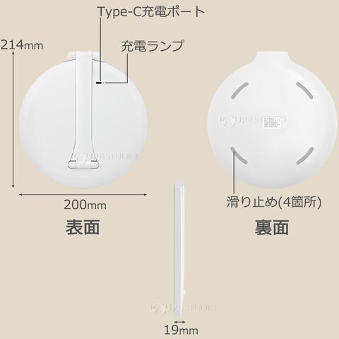 LEDライト付き メイクミラー 卓上ミラー 持ち運び 化粧鏡 USB充電式 Type-C 丸 コンパクト 携帯 スタンドミラー 折りたたみ おしゃれ クリスマスプレゼント クリスマススペック