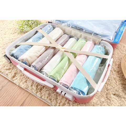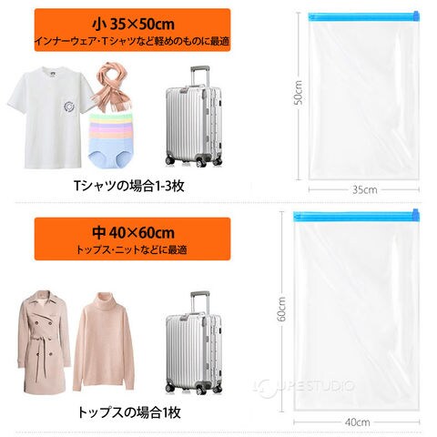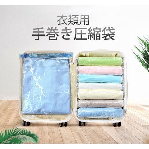 衣類 圧縮袋 5枚セット 旅行 掃除機なし 収納 アウトドア 服 Tシャツ ニット ポンプ不要 手で巻くだけ ダブルチャック式 繰り返し おすすめ