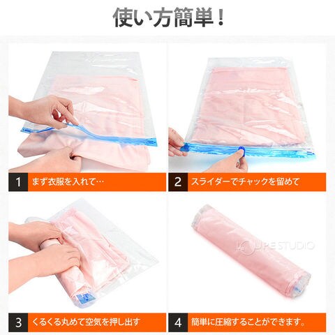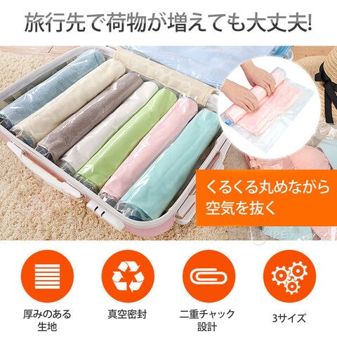 衣類 圧縮袋 5枚セット 旅行 掃除機なし 収納 アウトドア 服 Tシャツ ニット ポンプ不要 手で巻くだけ ダブルチャック式 繰り返し おすすめスペック