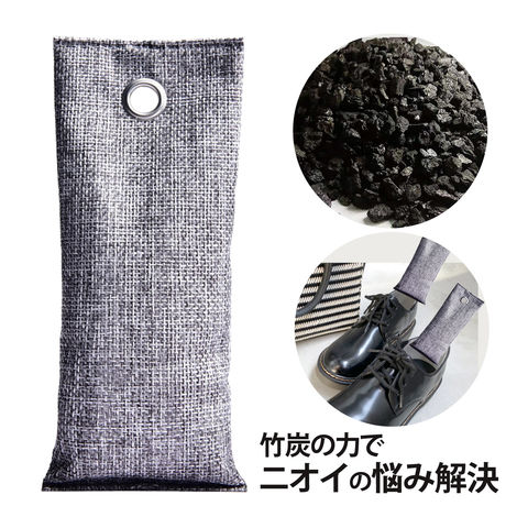 竹炭脱臭袋 シューズ用 75g グレー 1個 竹炭 天然素材 靴 消臭 玄関 除湿 生活臭 ペット臭 脱臭 冷蔵庫 クローゼット トイレスペック