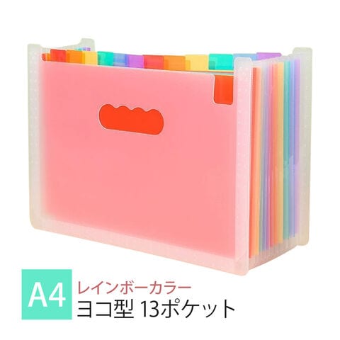 ドキュメントスタンド A4 ヨコ 横型 マットナチュラル・レインボー 13ポケット 12仕切り アコーディオンタイプ 収納 整理 仕分け ジャバラファイル ジャバラファイルケース 蛇腹 ファイル アコーディオンファイル