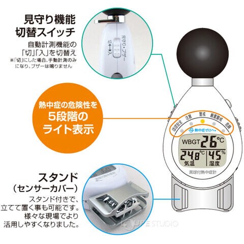 黒球付熱中症計 ケンコー(Kenko) デザインファクトリー 計測機器 黒球付き WBGT計 熱中症計 おすすめ 熱中症対策 暑さ対策 グッズ 工事現場 熱射病 温度計 湿度計 計測 作業 現場 工場 建設業 運動会 体育館 部活動 スポーツ イベント