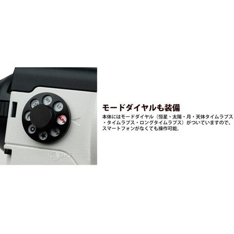 - 本体にはモードダイヤル(恒星・太陽・月・天体タイムラプス・タイムラプス・ロングタイムラプス)がついていますので、スマートフォンがなくても操作可能。