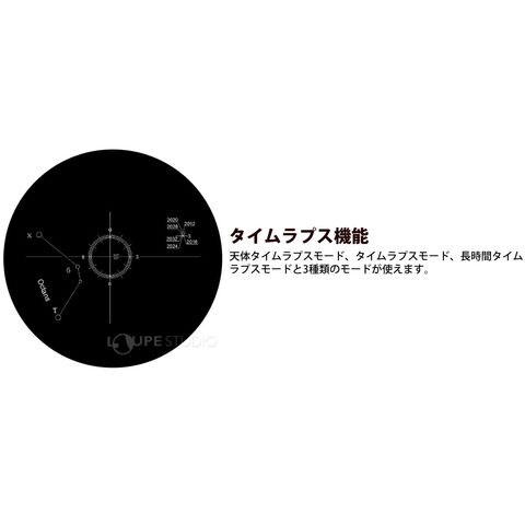 - 天体タイムラプスモード、タイムラプスモード、長時間タイムラプスモードと3種類のモードが使えます。