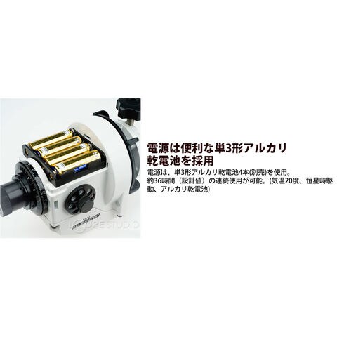 また、極軸合わせをサポートする、明視野照明装置が標準で付属されています。 - 電源は便利な単3形アルカリ乾電池を採用