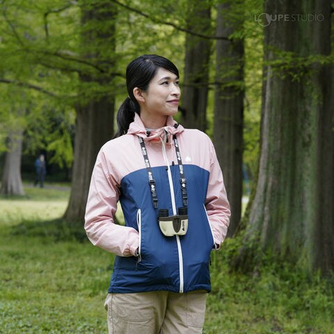 シーンに合わせて倍率を変えられるので、広角から望遠まで様々な使い方を楽しむことが出来ます。野鳥観察からハイキング、トレッキングなどアウトドアギアとしても大活躍します。腰のベルトに装着できる便利なケース、ネックストラップも付属しています。