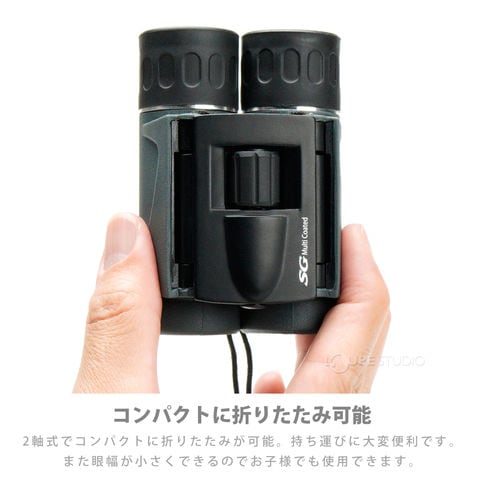 コンパクトに折りたたみのできる2軸式ダハプリズム双眼鏡。