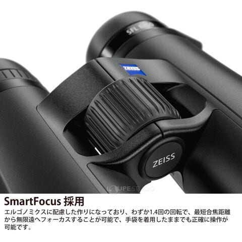 フォーカスはSmartFocusを採用し、無理に指を伸ばしたりすることなく素早く正確な操作が可能となりました。手袋を着用した状態であっても、正確なフォーカシングが可能です。またSFL双眼鏡は防水設計となっており、内部に窒素ガスを充填することによりレンズの曇りを防ぎ、LotuTecコーティングにより鮮明な視界を提供します。