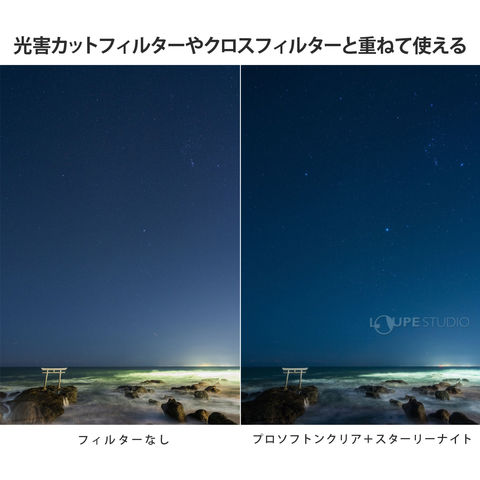 プロソフトン(A)の約半分のソフト効果。風景はクリアなまま星座を際立たせる、星景写真に最適なソフトフィルター