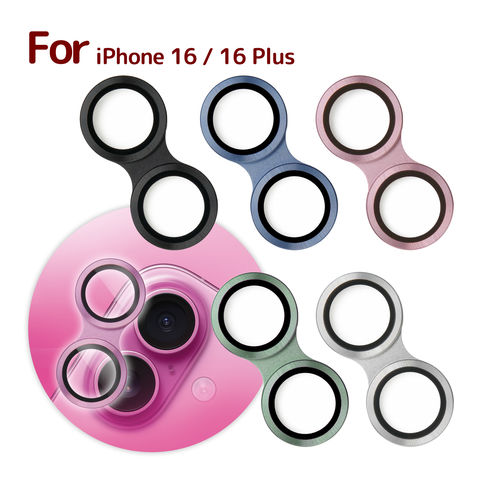 スマートフォン本体の豊富なカラーラインナップに合わせたバリエーションをご用意。「for iPhone 16 / 16 Plus」はブラック、ブルー、ピンク、グリーン、シルバーの全5色展開です。同じ色で合わせるもよし、あえて違うカラーでツートーンカラーを楽しむもよし。レンズを保護しながらドレスアップもできます。